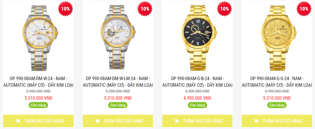 Olympia Nus 990: Với trái tim là bộ máy cơ Nhật Bản, OP990 luôn đem đến sự an tâm và chắc chắn cho người đeo. Bạn có thể lựa chọn thiết kế đơn giản, open heart (lộ 1 phần bộ máy bên trong) hoặc Skeleton (lộ hoàn toàn).
