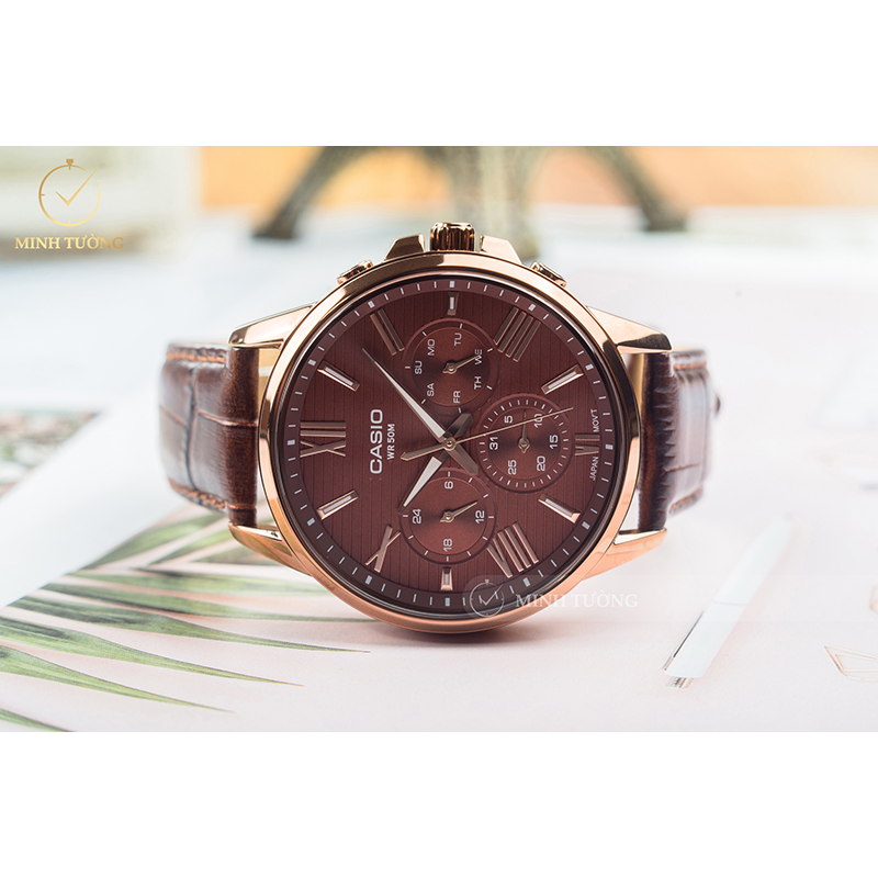 Casio MTP-EX300RL-5A – Nam – Kính cứng – Quartz (Pin) – Dây da