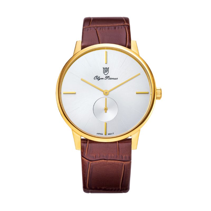 OP 130-13M-646-G-W-D – Nam – Kính sapphire – Quartz (Pin) – Dây da
